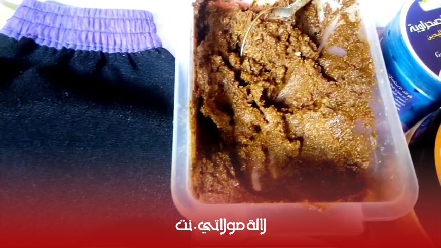 المكونات:10 ملاعق من التمر مطحون كالعجين+6ملاعق من الملح+4ملاعق من زيت الزيتون+ملعقتين من زيت اللوز+ملعقتين من الفازلين+ملعقتين من الماء الساخن+حبتين من الليمون
