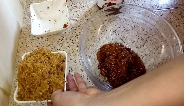 تحتاجون إلى:ملعقة كبيرة من الصوجا المطحونة+كمية من السمسم المطحون+ملعقة كبيرة من الحلبة المطحونة+قنينة من المربى السائل أو الشكولاطة.
