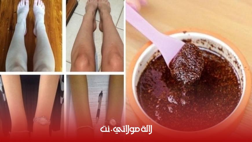 طريقة التحضير:قومي بمزج القهوة مع القليل من زيت الزيتون حتى الحصول على مزيج ناعم وسهل التطبيق، ثم يسخن هذا الأخير على حمام بخار.طبقي المزيج الدافئ على الأجزاء المراد علاجها وتركه لمدة 30 دقيقة، ثم اشطفي بالماء الدافئ، كرري هذه الخدعة مرتين في الأسبوع للحصول على نتائج أفضل.