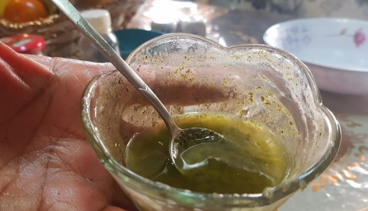 المكونات : ملعقتين من الشاي الأخضر المطحون +ملعقة من العلك المر +ملعقة من الياغورت الطبيعي + ملعقة من زيت جوز الهند .