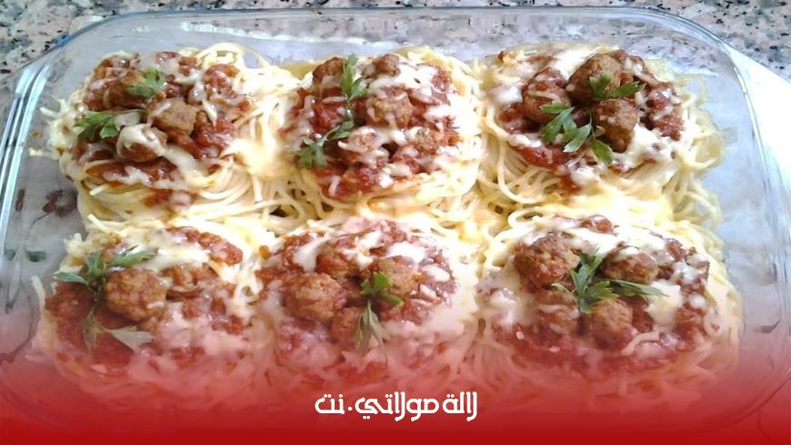 المقادير:سباكيتي مسلوقة مع القليل من الملح والزيت+250 غرام كلمار+ بصلة مشلضة+2 حبات قرع محكوك+2 حبات جزر محكوك+ فلفل أسود + ملح+جبن الموتزريلا+زيت المائدة