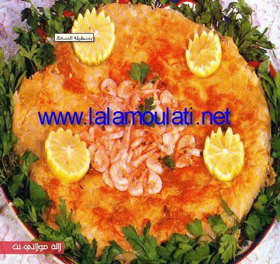 المهيء في مقلاة، تثنى بعد ذلك حواشي الورقات ثم تلصق بالبيض وتغطى البسطيلة