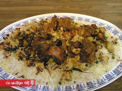 نسوي الأرز الأبيض بالطريقة العادية وبعد ما ينشف الماء ويستوي الأرز نضيف خلطة البصل
