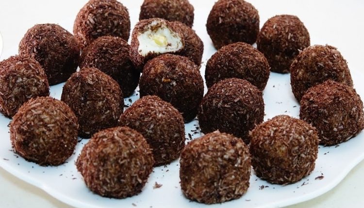 طريقة التحضير : في إناء نضع اللوز المطحون بقشرته ثم نضيف له اللوز المطحون بدون قشرة و نضيف جوز الهند ثم نخلط العناصر جيدا و نضيف المربى بالتدريج الى أن نحصل على عجينة ونشكل العجينة كريات من نفس الحجم و نقوم بإذابة الشوكولاطة في حمام مائي مع إضافة القليل من الزيت ثم نضيف اللوز المجروش و نخلط ونمرر الكريات في الشوكولاطة و نضعها في صينية بها بلاستيك غذائي ونضع الحلوى في الثلاجة الى أن تتماسك ثم نضعها في قوالب الحلوى الورقية ثم نقدمها .