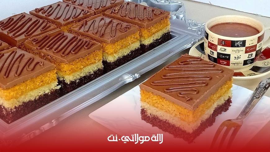 المكونات : جميع القياسات بكأس الياغورت او الزبادي بقياس 110 غ 2 كؤوس ياغورت او زبادي ما يعادب 220 غ 2 كؤوس سكر 2كؤوس زيت 2 كؤوس دقيق 2 كؤوس سميد رقيق 4 حبات بيض 21 غ خميرة الحلويات او البيكينج باودر 7 غ فانيلا كيس من فلان بنكهة الكراميل 1 ملعقة كبيرة كاكاو مر شوكولا للتزين.