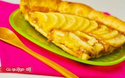 أخرجي القالب وادهنيه بالمربى ثم صففي شرائح التفاح وادخليها إلى الفرن لمدة 40 دقيقة.