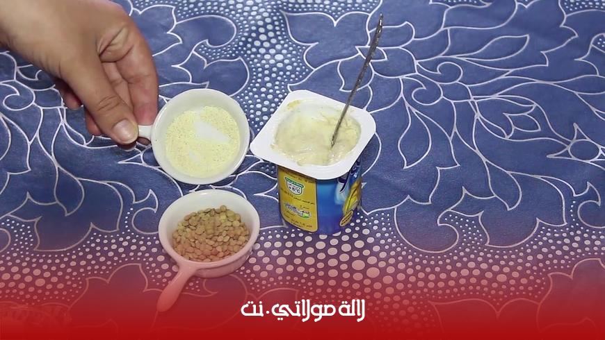 المكونات :3ملاعق من العدس المطحون+3ملاعق من الحمص+الياغورت الطبيعي
