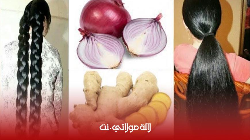 طريقة التحضير :قومي بتحميص قشور البصل قليلا،بعد ذلك قومي بطحنها،في إناء ضعي الزنجبيل ،أضيفي إليها ملعقتين من زيت الزيتون،وملعقة كبيرة ممتلئة من بودرة قشور البصل،امزجي المكونات جيدا ثم طبقيها على شعرك خصلة بخصلة،قومي بتغطية شعرك بالورق الغذائي واتركيها لمدة ساعتين بعدها اشطفي بالماء والشامبو .