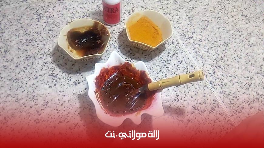 المكونات :القليل من الكركم +القليل من صابون البلدي +القليل من ماء الورد