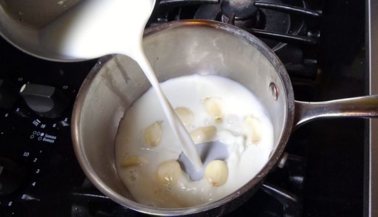المكونات :كوب من الحليب+ثلاث فصوص ثوم+ثلاث ملاعق كروية