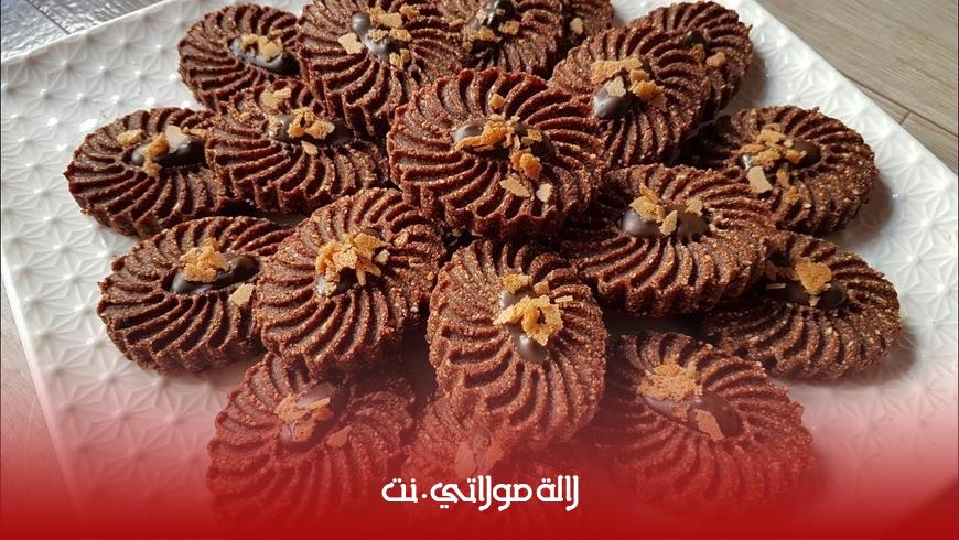 المكونات 250 غ كاوكاو محمر مطحون 50 غ كاوكاو مطحون جيدا 50 غ سكر صقيل 4 م ك ماء زهر م ك مربى م متوسطة زبدة حيوانية م ك بودرة الكاكاوالمر للتزيين شوكولا سوداء فيوتين