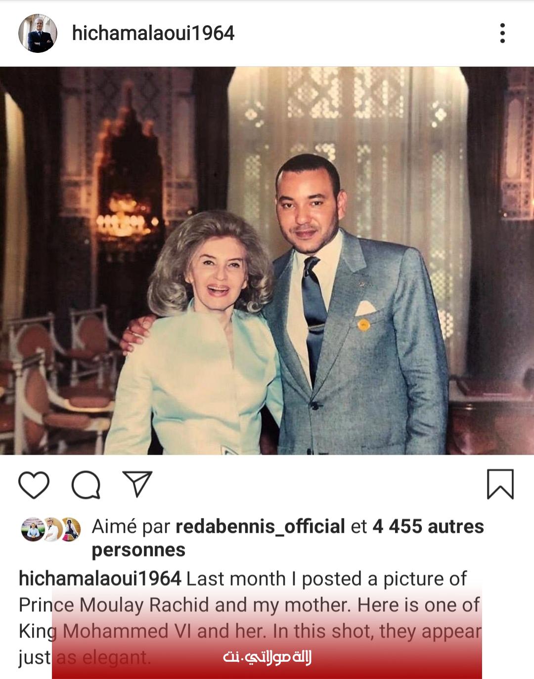 وأرفق مولاي هشام الصورة بتعليق جاء فيه”نشرت الشهر الماضي صورة للأمير مولاي رشيد بمعية والدتي. إليكم صورة للملك محمد السادس رفقتها. في هذه الصورة، بنفس الأناقة”.