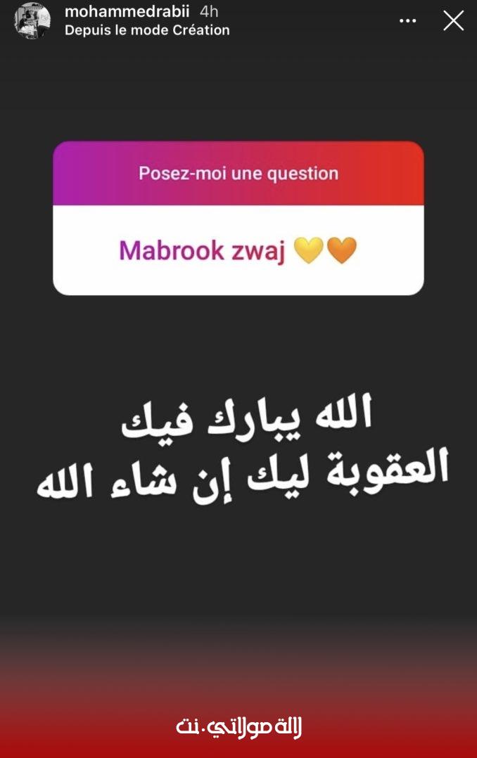 بعد مرور عدة سنوات على طلاقه ،أكد الملاكم المغربي محمد الربيعي زواجه للمرة الثانية.وفِي رد على تساؤلات متابعيه عبر خاصية ستوري على حسابه الرسمي على إنستغرام، أجاب الربيعي عن سؤال يخص زواجه، حيث أكد أنه دخل القفص الذهبي هذا العام.
