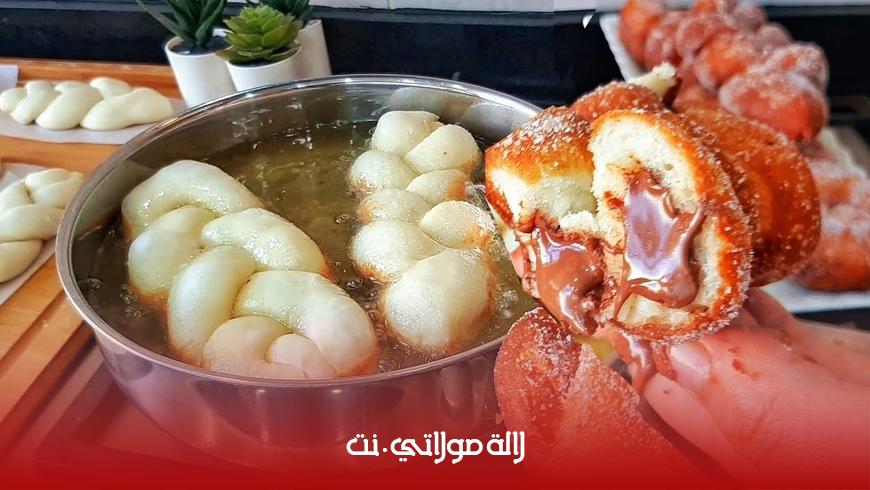 طريقة التحضير :في وعاء مناسب،ضعي الخميرة والسكر،الحليب والماء الدافئ والزيت،قومي بمزج المكونات،اضيفي سكر الفاني والملح ثم الدقيق بشكل تدريجي حتى نحصل على عجين رطب،نتركه يختمر لمدة ساعة . بعد ذلك تشكل الفطائر،قومي بحشوها بالشوكولا،ثم تقلى في زيت ساخن.