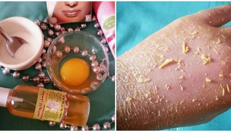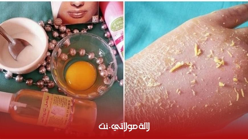 خذي سيدتي صفار بيضة والقليل من السكر الناعم أو كلاصي وأضيفي له القليل من زيت الورد أو زيت الخزامى أو زيت متوفر لديك في البيت شريطة إلا تكثري منه فقط ملعقة صغيرة، ثم اخلطي المكونات جيدا وطبقيها على المناطق التي ترغبين في تقشيرها واتركي الخلطة إلى أن تشعري أن جفت ثم اشرعي في فرك جسمك بحركات طلوعا ونزولا إلى أن تزيلي الخليط مع الشوائب ستظهر لك النتيجة في الحين بعدها استحمي بطريقة عادية.