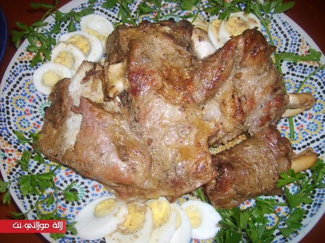 نجمع الجوانب بالخيط ثم نضع الظلعة في الكسكاس مع اوراق موسى و الثوم، تبخر لمدة ساعتان تقريبا الى ان تنضج تماما. نأخذ الظلعة توضع في لاطة الفرن مغلفة بورق الالمنيوم تدهن بالزبدة وتدخل للفرن لمدة 15 دقيقة تقريبا حتى تأخذ اللون الذهبي، ثم توضع في طبق التقديم مرفوقة بالبيض واوراق المعدنوس وتقدم ساخنة بالصحة والراحة.