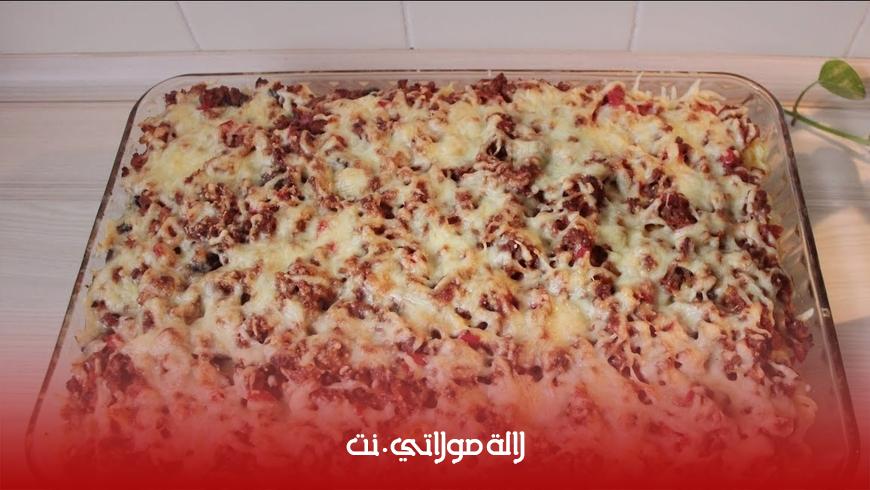 المُكونات: عبوة من المعكرونة+ ربع كيلوغرام من لحم الغنم أو الأبقار+ بصلة صغيرة الحجم+ نصف كوب من الفطر+ كوب من الجُبنة الصفراء+ حبة من الفلفل الأخضر “حار أو حلو حسب الرغبة”+رشة من الفلفل الأسود+كميّة بسيطة من الحبة السوداء+ ملح حسب الحاجة.