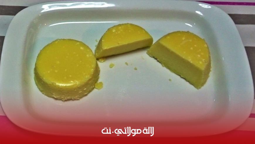 يمكنك سيدتي أن تعتمدي هذه المكونات كوبان من الحليب البودرة كوب من الزيت، والماء صفار بيضتين حبتان من الفرماج المثلث نصف ملعقة صغيرة من الملح بضع قطرات من العصير الحامض ثم قومي بمزج جميع المكوّنات عدا الحليب والعصير الحامض في خلاط كهربائي، ثُم إضافتهما بالنهاية تدريجيّاً حتّى يُصبح الخليط كثيفاً. سكب الخليط في قوالب خاصة ومغلفة من الداخل بالبلاستيك الغذائي، ثمّ وضعها في وعاء وفي حمام مائي ترك الجبنة في الحمام المائي على نار هادئة جدا، ثمّ إزالتها عن النار ووضعها في الثلاجة.