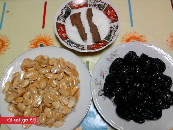 للتزيين غنحتاجو برقوق ،سكر ،قرفة ،لوز مقلي