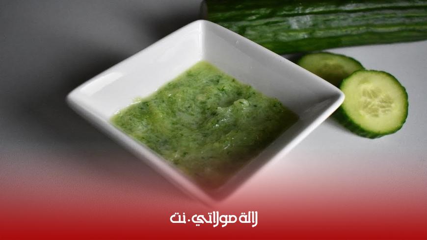المكونات : حبة من الخيار المهروسة جيدا والناعم + ملعقة من الجليسرين + ملعقة من ماء الورد