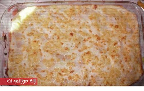 و نكرر نفس العملية مرة اخرى ثم نغطي بطبقة اخيرة ديال اللازان و نكبو فوقها لاصوص بيشاميل و نرشو الفرماج محكوك…و ندخلها للفرن