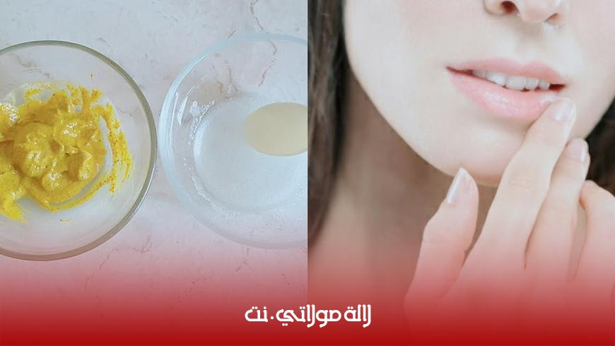اخلطي ملعقة من الكركم المطحون جيدا وكمية من جيل الصبار جيدا ثم طبقي الخلطة على بشرتك واتركيها إلى أن تشعري أنها جفت تماما ثم اشطفي بالماء البارد، ويفضل تكرار الوصفة كل يوم قبل النوم لمدة 10 أيام للحصول على النتيجة المرغوبة.