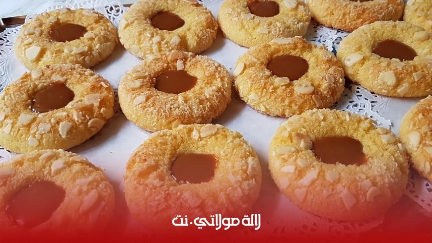 المكونات بيضة نصف كاس سكر نصف كاس زيت نصف كاس جوز الهند مبشور الحامض علبة ياغورت 110 غ كاسان سميد 250 غ 8 غ خميرة الحلويات للتزيين لوز ايفيلي جوز الهند كراميل.