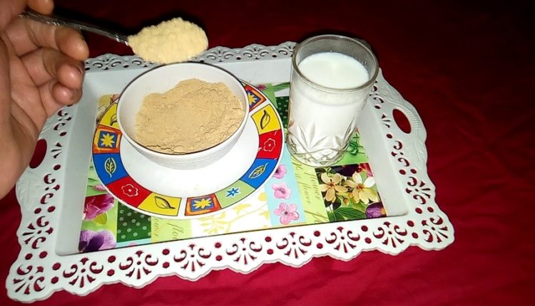 المكونات : حليب أو ياغورت+عشبة البكبوكة مطحونة
