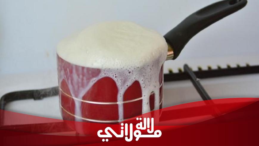 يمكنك سيدتي أن تقومي بهذه الحيلة البسيطة فقبل إفراغ الحليب في الإناء مرري الإناء تحت الصنبور وأفرغيه من الماء أي لا تفرغي الحليب في أناء جاف ، ثم صبي الحليب وضعيه على النار حتى يغلي بالشكل المعتاد، و مباشرة بعد غلي الحليب صبيه في إبريق التقديم واغسلي الإناء بالليفة العادية للأواني مع حبات من الملح ستجدين أن كمية الحليب التي تلتصق عادة هي أقل وأنها تزول بسهولة ويسر وهذا هو الأهم.