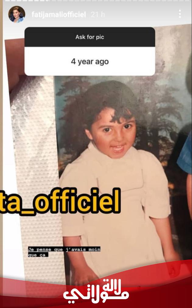 شاركت فاتي جمالي صورة من طفولتها عبر ستوري على حسابها في أنستغرام.جمالي شاركت الصورة وفتحت نقاش مع المتتبعين، وقالت ليهم يخمنوا شحال كان في عمرها داك الساعة.