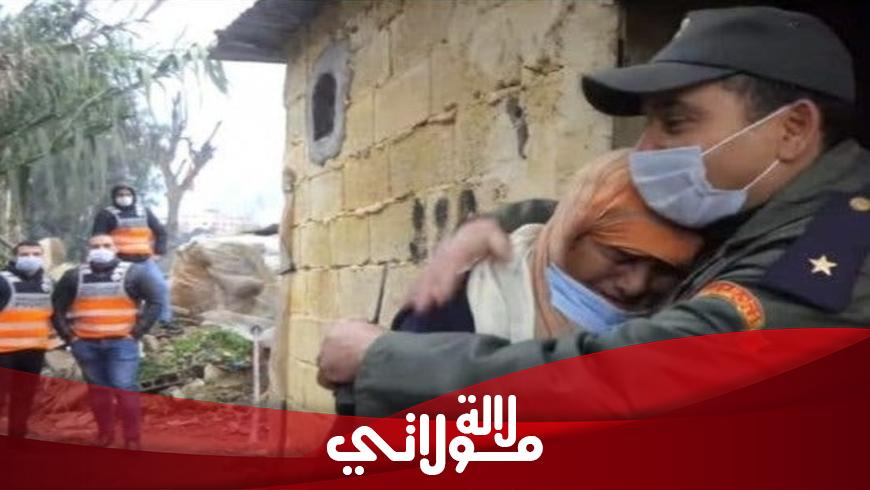 وبمدينة سلا، أثارت صورة وثقت لمشهد إنساني بين ضابط بالقوات المساعدة وسيدة عجوز تفاعل كبير من طرف رواد موقع التواصل الاجتماعي الفايسبوك، بعدما ظهر الضابط وهو يقبل رأس السيدة المسنة وضمها، بالتزامن مع عملية إخلاء مجموعة من البراريك بسهب القايد بالمدينة، والتي استفاد مالكوها من قطع أرضية في إطار عملية إعادة إيواء ساكنة السهب.