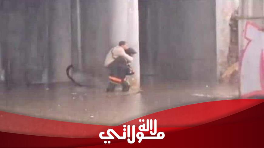 وفي مشهد إنساني، آخر، تداول رواد مواقع التواصل الاجتماعي، صورة لعنصر من الوقاية المدنية بمدينة الدار البيضاء يحمل شخصا على ظهره إلى بر الأمان، بعدما غرقت سيارته تحت قنطرة غمرتها المياه بالمدينة.
