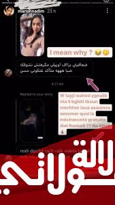 ونشرت ماريا انتقادا لإحدى متابعاتها التي أرسلت لها رسالة قالت من خلالها: “نوضي تقادي رجعي لراجلك.. واقيلا طلقك لاحك حيت وليتي كيلعود حالتك”، لترد نديم بغضب شديد من خلال تعليق مفاده أن الشهرة هي السبب الرئيسي في تطفل البعض من الجمهور عليها بهذه الطريقة.
