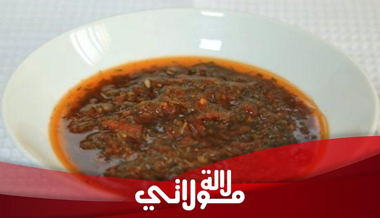 نغسل القزبر والمعدنوس .نضعه في مهراس نضيف الثوم وندق الكل مع الملح نضعه في إناء .نضيف التحميرة.الكامون.الحار عصير الحامض .زيت العود ونخلط الكل حتى ينسجم.
