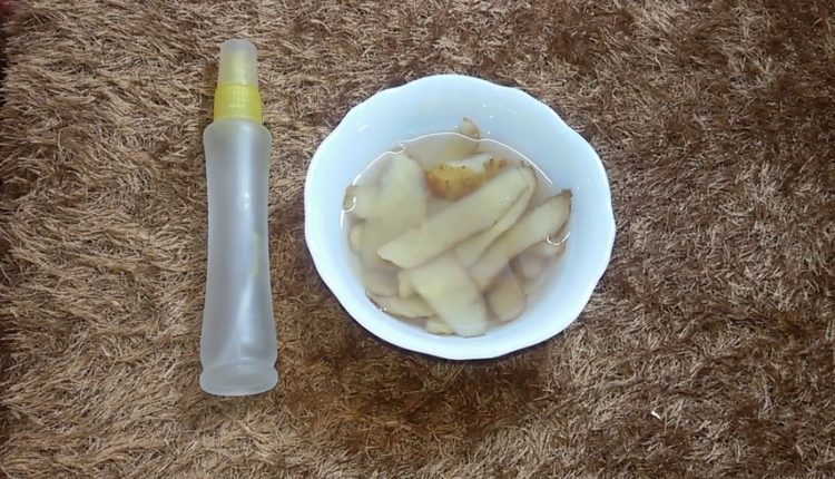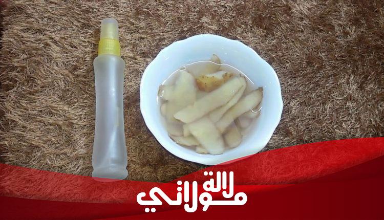 قومي سيدتي بجمع قشور البطاطس البيضاء أو الصفراء وضعيها في إناء وأضيفي عليها كوبين إلى 3 أكواب من الماء وملعقة صغيرة من الملح وملعقة من حبوب الشاي الأسود واتركي المكونات إلى درجة الغليان بعدها صفي المحلول في بخاخ ثم رشي به شعرك كل يوم لمدة أسبوع بعدها اشطفي وكرري الوصفة لأسبوع آخر وسترين سيختفي الشيب.
