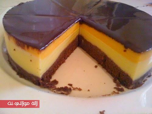ونغليوه ونصبوه فوق الكراميل ونتركوه يعقد فالثلاجة ونرجعو نحضرو الكيك فيه 2 بيضات+6م ك سنيدة+6م ك زيت +6م ك حليب+2 م ك كاكاو +2م ك حليب غبرة+2 خميرات +5 م ك دقيق +فاني او قشرة الليمون او الحامض حسب النكهة للي درتي فالكراميل نعملو الكل فمولينكس ونصبوه فوق الفلان ونعملو المول فلاطة دالفرن فيها الماء سخون وندخلوها للفرن حتى ينضج الكيك