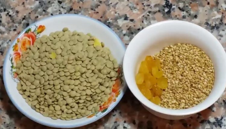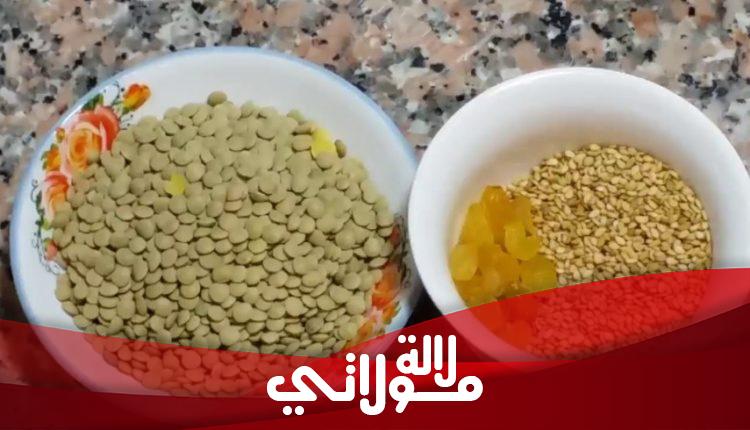 المكونات : 4معالق كبار من سمسم ابيض مطحون+ 4معالق كبيرة من العدس مطحون +القمح مطحون