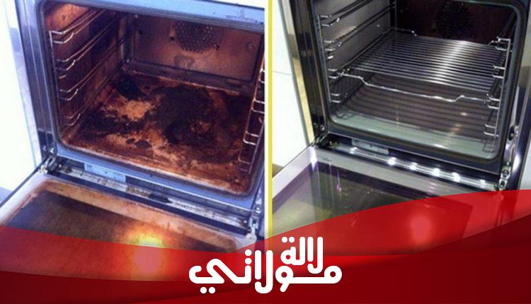 ومع هذه الحيلة العبقرية التي نقترحها عليك سيدتي من خلال مجلة لالة مولاتي ستتخلصين من مشكلة الدهون المتراكم في الفرن وإعادة اللمعان له دون أن تبذلي مجهودا في ذلك فقط قومي بخلط كمية من سائل التنظيف مع كمية من الماء المغلي وملعقة من صودا الخبز وملعقة من الرماد واخلطي جيدا ثم رشي الفرن وحتى الزجاج سواء كان فرنا كهربائيا أو فرنا غازيا واتركي الخلطة عليه مدة 20 دقيقة مع تحريكها بين الحين والآخر، ثم بعد ذلك قومي بتنظيف الفرن بمنشفة دون مع غسلها بماء نظيف كلما مسحتي بها الفرن سترين انه سيتحول إلى لامع وبراق.