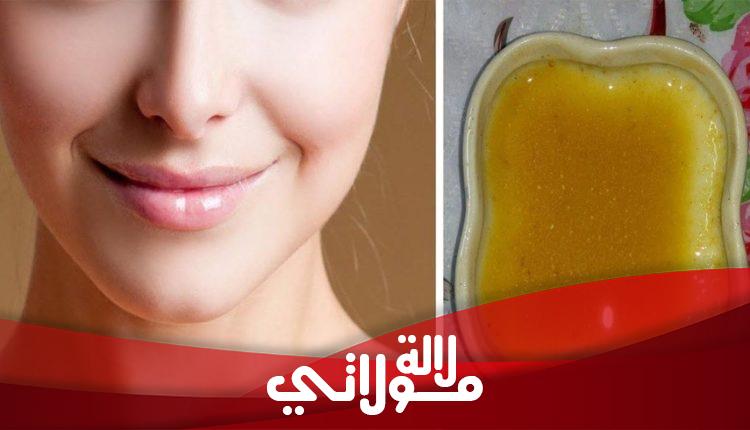 فقط قومي بخلط ملعقة من عصير البرتقال وملعقة من الدقيق الأبيض الناعم وملعقة الكركم البلدي المطحون بعدها طبقي الوصفة على بشرتك واتركيها مدة 30 دقيقة ثم اشطفي بالماء البارد ثم كرري الوصفة كل يوم لمدة 10 أيام ستظهر لك النتيجة.
