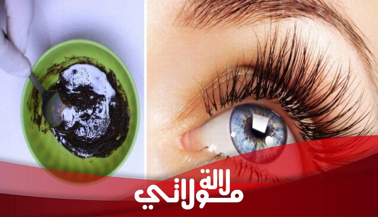 المكونات : ملعقة من نواة التمر المحمصة والمطحونة على شكل بودرة + ملعقتين إلى 3 من زيت الخروع + نصف ملعقة من الكحل البلدي + ملعقة من زيت جوز الهند