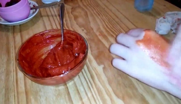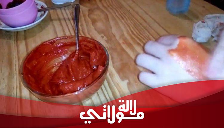 طريقة التحضير :تخلط المكونات مع بعضها البعض بشكل جيد ويوضع على النار إلى أن يغلي حتى يتجانس، ثم يترك ليبرد. بعد ذلك يوضع الخليط على الجسم مع التركيز على الأماكن الداكنة. يترك على الجسم لمدة 20 دقيقة، ثم يغسل الجسم بالماء الفاتر، وينشف.
