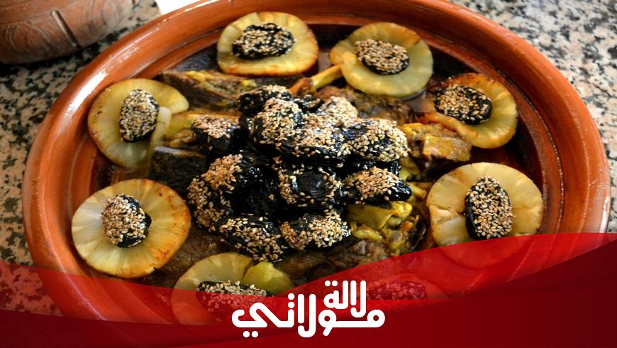 المقادير: كيلو (1000 جم) لحم مقطع مكعبات كبيرة+ 2 ثمرة بصل متوسطة الحجم مفرومة ناعما+ 4 فصوص ثوم مهروس+ 2 كوب (500 مل) ماء مغلي+ ¼ 1 كوب (250 جم) برقوق+ ½ كوب (100 جم) لوز مقشر ومحمص+ ¼ كوب (60 مل) زيت زيتون+ 2 ملعقة كبيرة (25 جم) سكر+ ملعقة كبيرة (12.5 جم) زبدة+ ملعقة كبيرة (12.5 جم) سمسم محمص+ ملعقة صغيرة (5 جم) زنجبيل+ملعقة صغيرة (5 جم) كركم+ ½ ملعقة صغيرة (2.5 جم) قرفة مطحونة+ ¼ ملعقة صغيرة (1.25 جم) زعفران+ 2 عود قرفة+ملح وفلفل أسود.