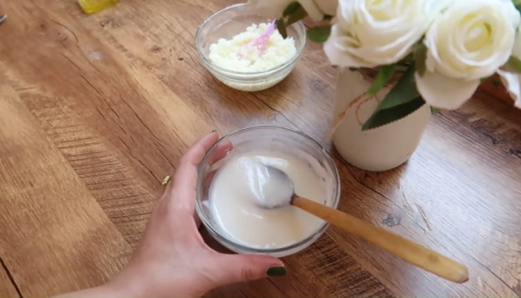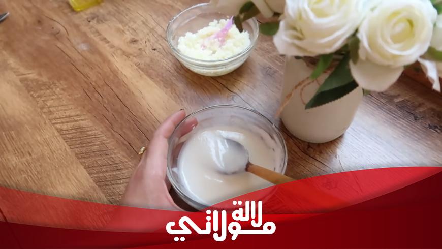 المكونات : 3 ملاعق من الفازلين الطبي + ملعقة من زيت جوز الهند + ملعقة من النشا الناعم
