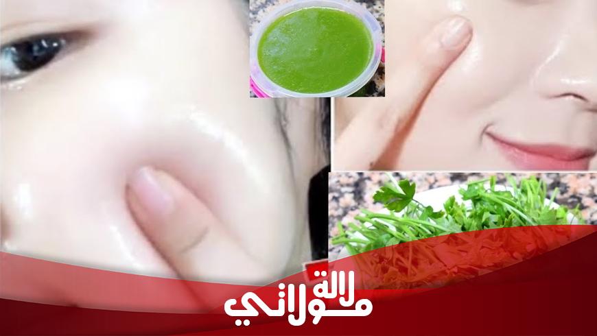 يمكنك سيدتي أن تقومي بطحن كمية من البقدونس جيدا إلى أن تصبح ناعمة بعدها أضيفي لها ملعقتين من عصير الليمون وطبقي الخلطة على بشرتك واتركيها إلى أن تجف ثم أزيليها واشطفي كرري الوصفة كل يوم قبل النوم لمدة 10 أيام ستظهر لك النتيجة.
