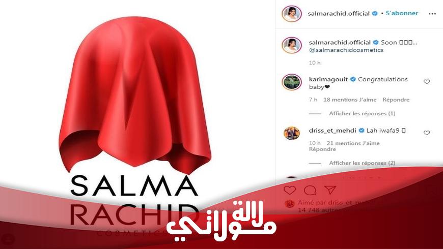 وبالموازاة مع ذلك، قامت الفنانة المغربية الشابة بإنشاء حساب خاص بعلامتها الجديدة الخاصة بمستحضرات التجميل، وذلك عبر تطبيق الانستغرام.وقد أبدى عدد كبير من متابعي سلمى إعجابهم وتأييدها على خوض غمار هذه التجربة الجديدة، كما أبدوا حماسهم لاكتشاف مجموعتها الجديدة الخاصة بمستحضرات التجميل.