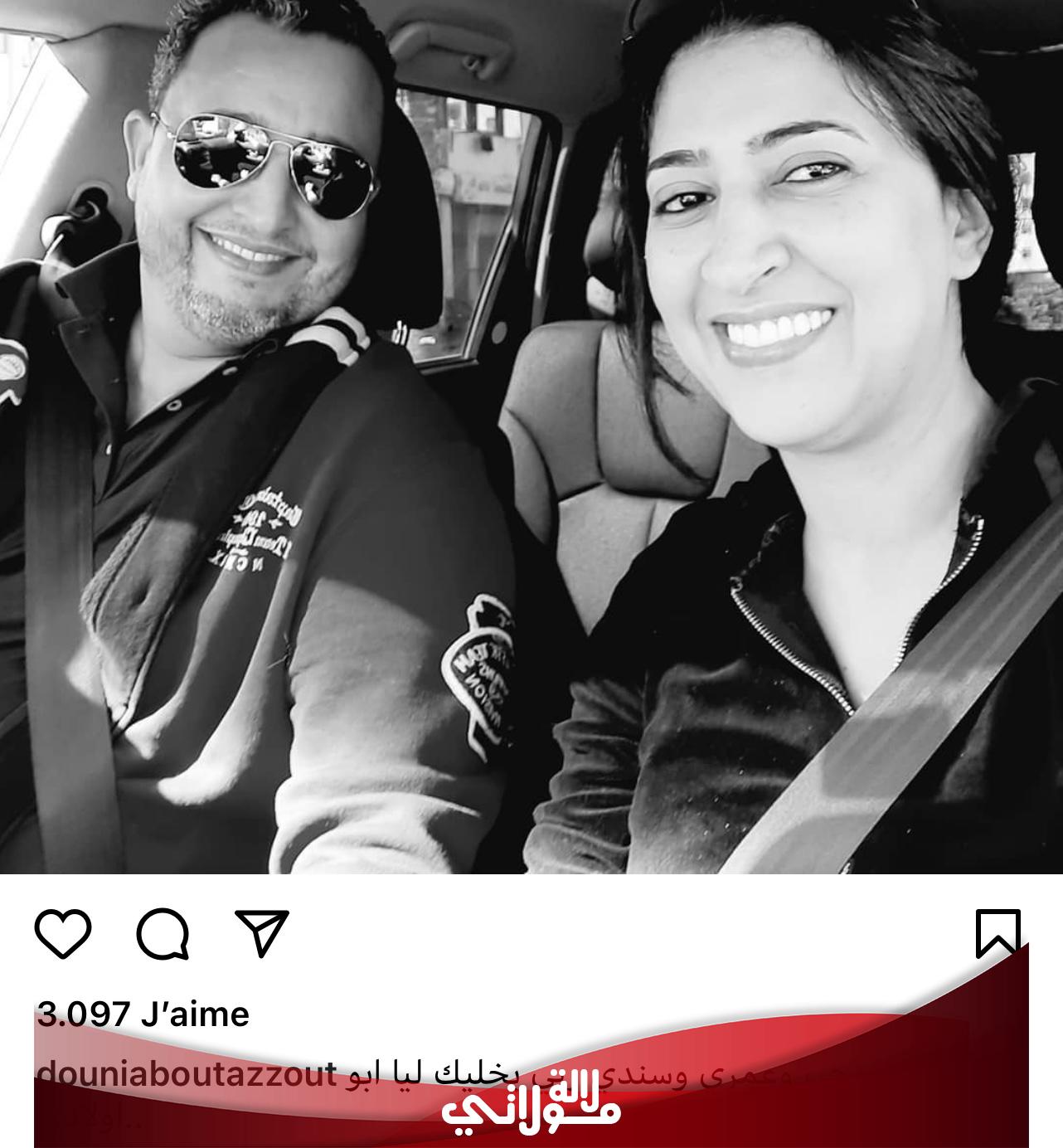 تقاسمت الممثلة دنيا بوطازوت، مع متابعي حسابها الرسمي على إنستغرام، صورة سيلفي حديث تجمعها بزوجها.وأرفقت بوطازوت الصورة بتعليق تتغزل فيها بزوجها، كتبت فيها: « حبيبي وروحي وعمري وسندي ربي يخليك ليا أبو ولادي ».