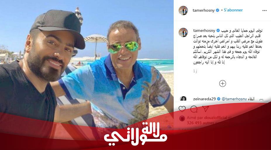 وأعلن تامر حسني الذي شارك صورة تجمعه بوالد زوجته الراحل، أن هذا الأخير توفي بعد صراع طويل مع مرض القلب وأمراض أخرى مزمنة، لم يذكرها.