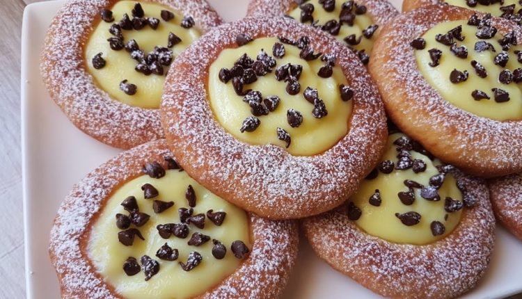 المكونات بيضة 250 غ دقيق ابيض ملعقة كبيرة سكر ملعقة متوسطة زبدة رشة فانيلا ملعقة متوسطة خميرة الخبز رشة ملح حليب دافئ للعجن مكونات الكريمة كاس ونصف حليب ملعقة كبيرة بودرة الكريم باتسيير ملعقة ونصف سكر حبيبات الشوكولا للتزيين
