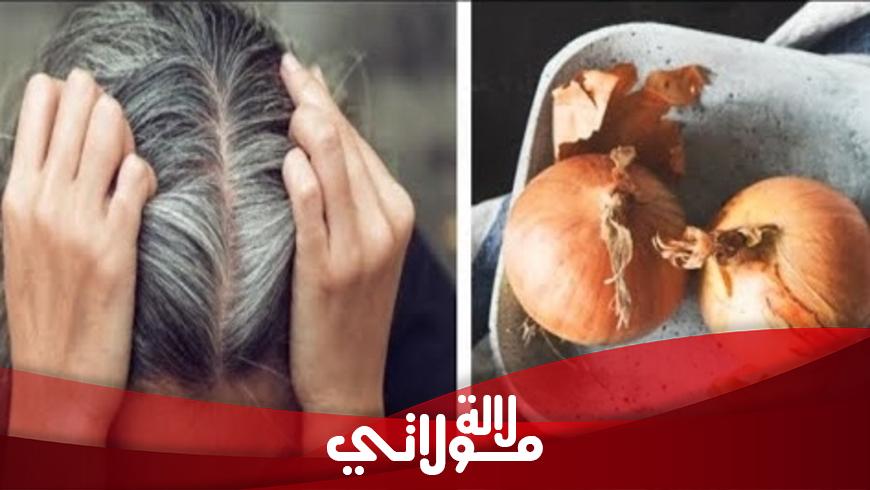 قومي سيدتي باعتماد كمية من مغلي قشور البصل الاحمر وكمية من قشور الباذنجان وكمية من بودرة الذرة ، بعدخا اخلطي جيدا ثم طبقي الخلطة على شعرك واتركيها مدة ساعتين ثم اشطفي مع تكرار الوصفة لمدة 5 مرات سترين أن الشيب اختفى.