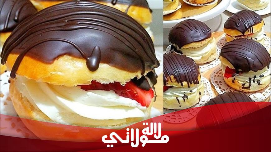 من مطبخ شهيوات ياسمينة / المكونات : المكونات 500 غ دقيق 180 مللتر حليب دافئ 70 مللتر ماء دافئ بيضة واحدة 60 غ سكر 2 ملاعق كبيرة زبدة اي 50 غ خميرة خبز 11 غ ربع ملعقة صغيرة ملح فانيليا 7,5 غ +لكريم باتسيير 250 مللتر حليب 2 اصفر بيض 50 غ سكر 30 غ نشا فانيليا 7,5 غ 25 غ زبدة اي ملعقة كبيرة 25 غ شكلاط ابيض ممتاز اختياري+ لكريم شنتيي نصف كاس حليب باارد جداا اي 80 مللتر نصف كاس بدرة شنتيي اي 80 غ+للتزيين 180 غ شكلاطة سوداء.
